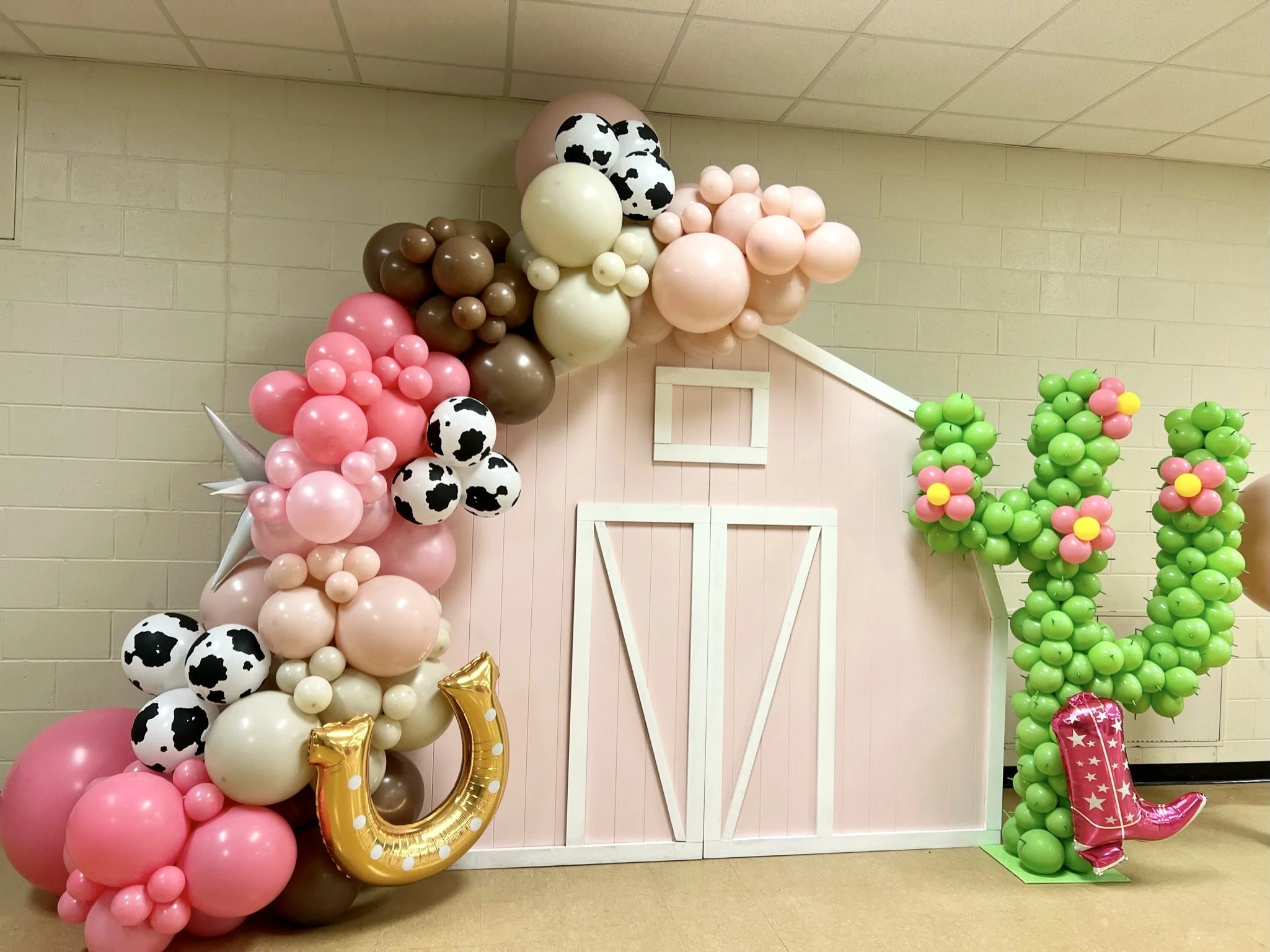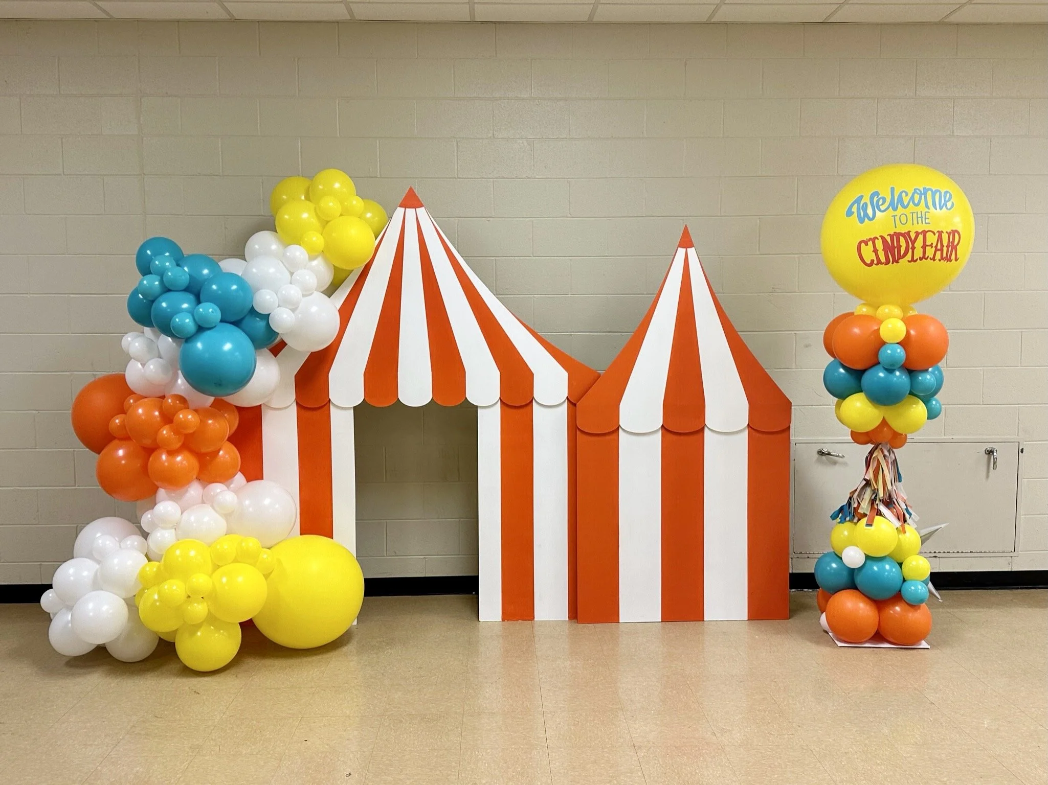 This rental includes four curtain panels and one pipe and drape set. Balloons are not included in this price.